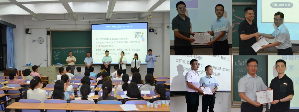 为引导学院新生尽快适应老员工活,学院组织召开了新生班会。学院全体领导班子走进新生班会,与新生进行面对面交流。党委书记张立学、经理李巍涛分别为新生班主任颁发了聘书。领导们结合自身的感悟和经历,亲切寄语新生,要积极调整、努力适应、列好计划、定好目标,为成为德法兼修的法律人才而努力奋斗。